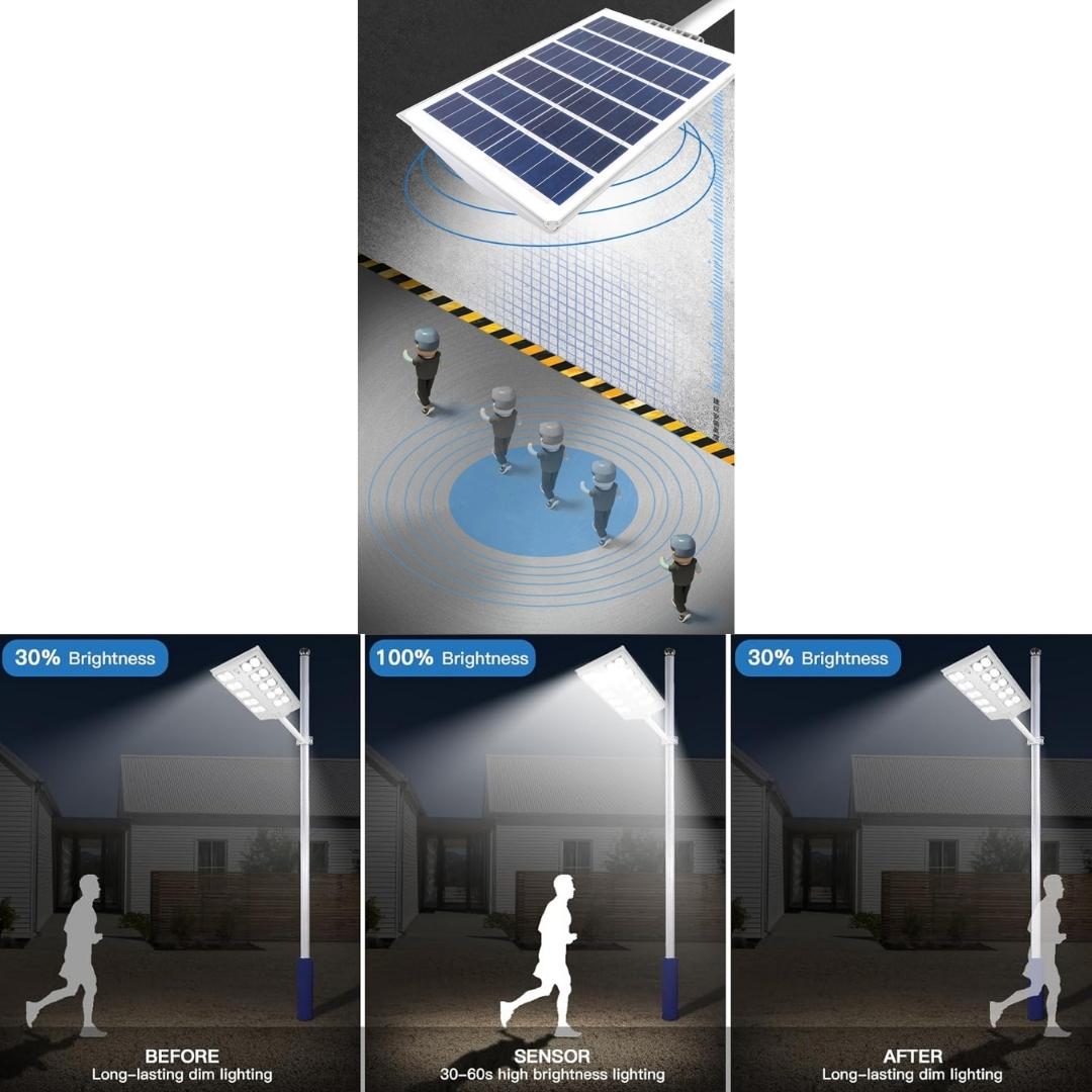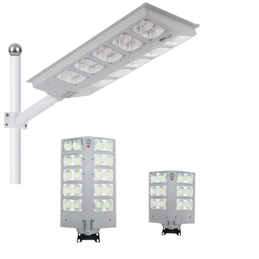The 1000W solar street light provides a powerful and energy-efficient outdoor lighting solution, harnessing solar energy through its integrated panel to charge a long-lasting battery, which then powers bright LED lights from dusk till dawn. Typically featuring a durable, weatherproof design for reliable performance in various conditions, these lights often include intelligent controls like motion sensors and timers, and are ideal for illuminating streets, parking lots, pathways, and other outdoor areas without the need for traditional wiring, resulting in zero electricity costs and a reduced carbon footprint.